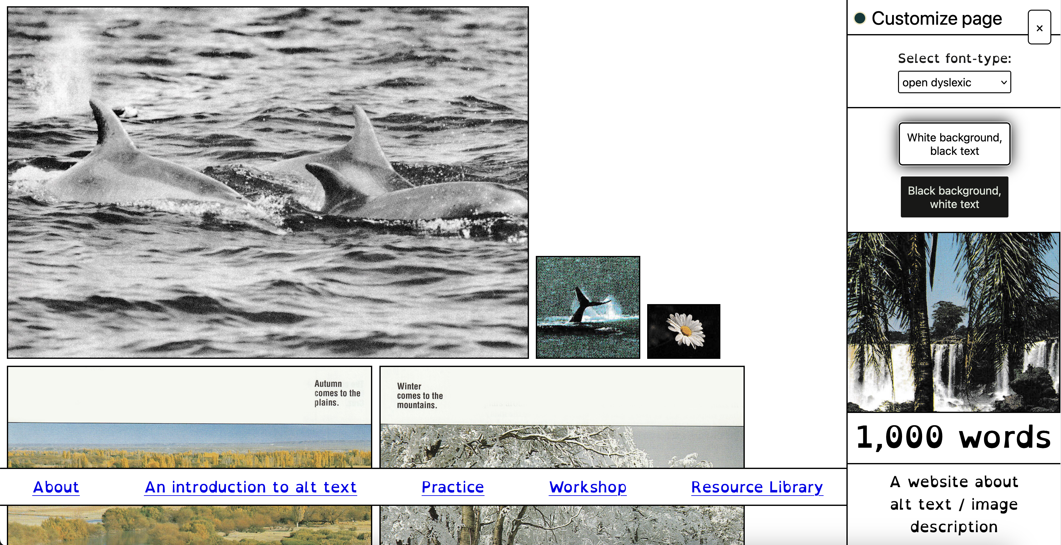 "1,000 words", a website about alt text and image description, was my senior thesis project for the BFA Graphic Design program at Virginia Commonwealth University.